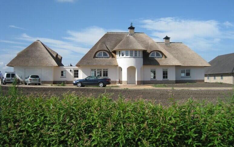 Rond een huis met een rieten dak behoren niet veel bomen te staan. De bomen geven schaduw en belemmeren de drogende werking van de wind. Druppels mogen nooit vanuit een boom op het dak vallen.