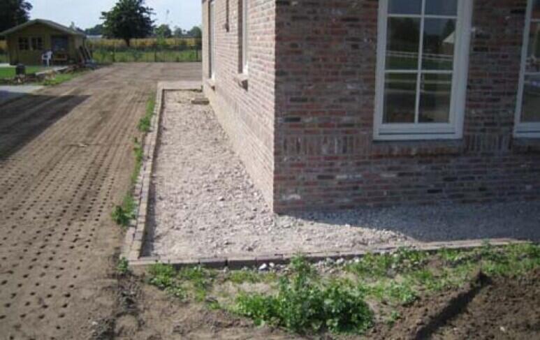 Op zandgronden zakt het hemelwater meestal gewoon in de grond. Op kleigronden kan een afvoer naar een sloot of bezinkput noodzakelijk zijn.